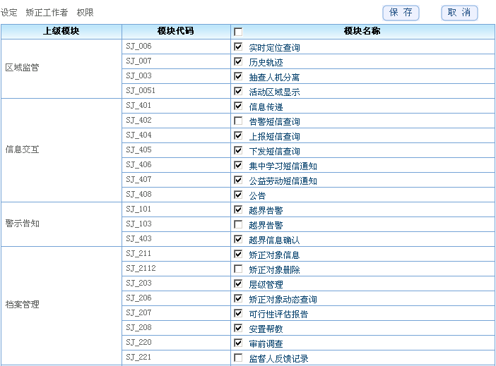 并自动生成各类统计报表。 1、矫正人员信息 为矫正对象建立档案信息库,包含矫正对象的姓名、住址、年龄、联系电话、入矫日期、解矫日期、 社区矫正类型、主要罪名等基础信息, 方便查询使用。并可以设定矫正对象的安全等级,不同安全等级的矫正对象采取不同的监管力度。 |