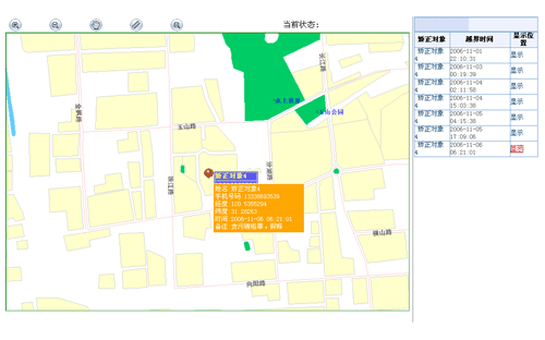 | 区域监管定位功能可以在电子地图上实时地显示矫正对象所在位置, 还可以显示矫正对象一段时间内的历史移动轨迹,做到全方位的监管。 |