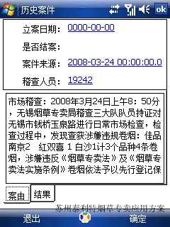 而且对于专卖稽查人员在现场的执法的过程中提供详实的资料支持,比如:该零售户的销售记录、历史案件记录、历史巡查记录等等。