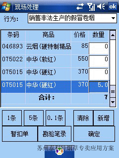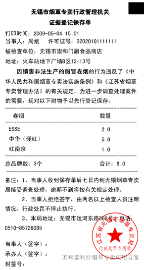 | 在现场,专卖执法人员发现违法违规的现象, 可以通过智能手持平台,选择相应品牌和违法行为,实现相关的证据登记保存单和勘验笔录的打印。 | ![]() |