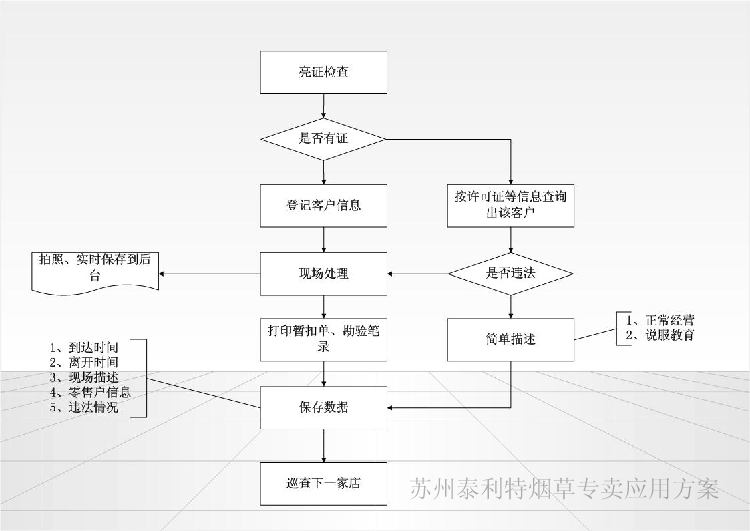 专卖稽查工作人员日常走访市场时候,可以应用智能手持平台进行日常业务处理,
