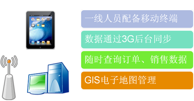 | 1、客户经理等一线工作人员配备专业软件的智能手机(android手机)。 2、现场查询和保存数据通过联通公司运营的WCDMA制式的3G网络。 3、实时和烟草公司业务系统的数据同步,以便及时准确的提供数据支持和存储数据。 4、应用GPS全球定位系统,为客户经理的管理提供支撑。 |