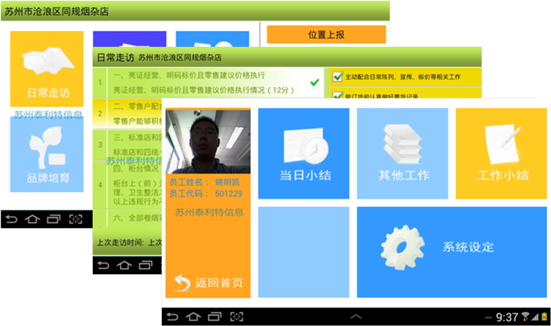 在当前烟草系统内,一线工作人员在工作和管理过程中总是会存在如下几个方面的问题: 1、 工作量大、效率低 烟草客户经理和稽查人员的服务职能越是凸显其重要性,对零售户的服务力度越是大,工作量也就越加的大,不仅仅需要指导经营、宣传政策,更加是要采集零售户多种信息如销售、库存、评分等数据,以备后台程序统计分析,供营销、专卖等部门决策分析,通常在没有设备的情况下工作人员只能通过手工方式记录各种信息,效率极其低下。 2、 出错率高 由于在现场大量的手工工作,并且在回到了公司还需要再次人工录入电脑中,必然导致较高的错误率,从而影响到后台系统的分析和决策。 3、 服务现场信息量少 在零售户现场,零售户相关的信息无法获知,比如前几次的拜访情况如何?该零售户有没有历史案件记录?零售户信息只能通过记忆和现场的台账、送货小票等去了解,但是如果更加详尽的资料就只能回到公司通过电脑获知了。 4、 管理力度低 对客户经理的工作情况和绩效管理缺乏高效的工具和数据支持,只能靠日常抽查和平时的手工单据去统计分析。 5、 销售和专卖沟通效率低 专卖和业务在信息渠道上沟通效率低下,没有一个整合的信息流转平台,以便双方更好的协同工作,共同服务零售户,管理好市场。 |